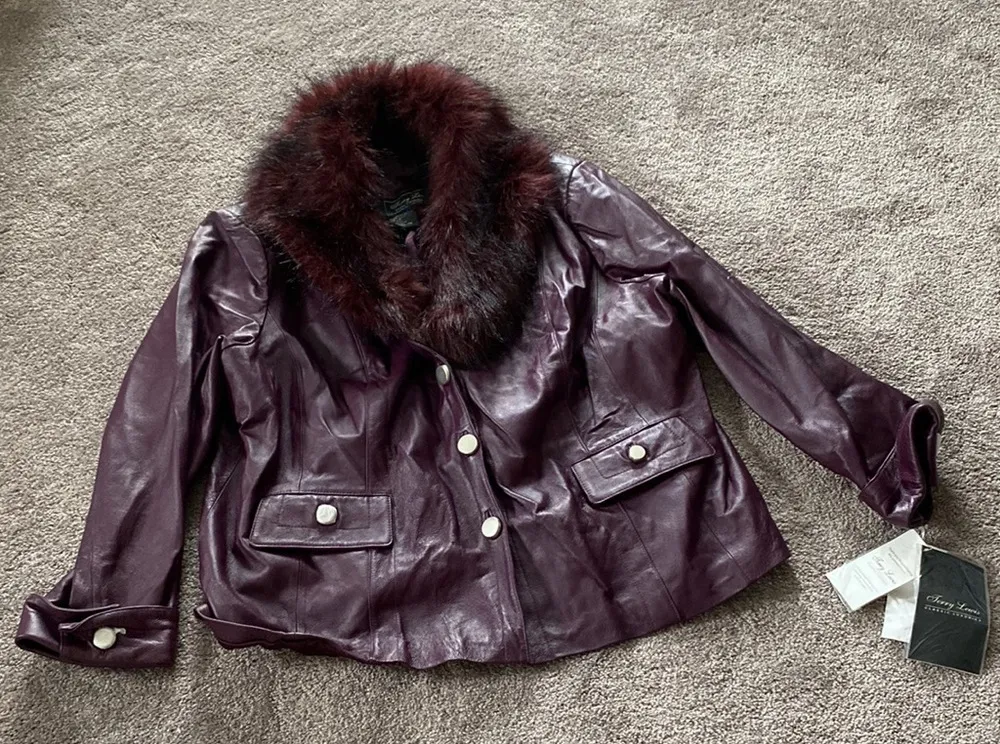 Terry Lewis Classic Luxuries Burgundy Faux Fur Collar Leather Jacket SIZE 2X - $130 New With Tags - From My