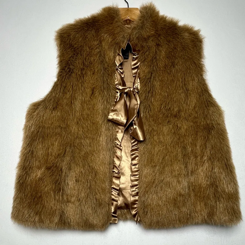 Terry Lewis Classic Luxuries Vintage Y2K Faux Fur Vest Satin Trim Women Size L Tan Size L - $34 - From heather