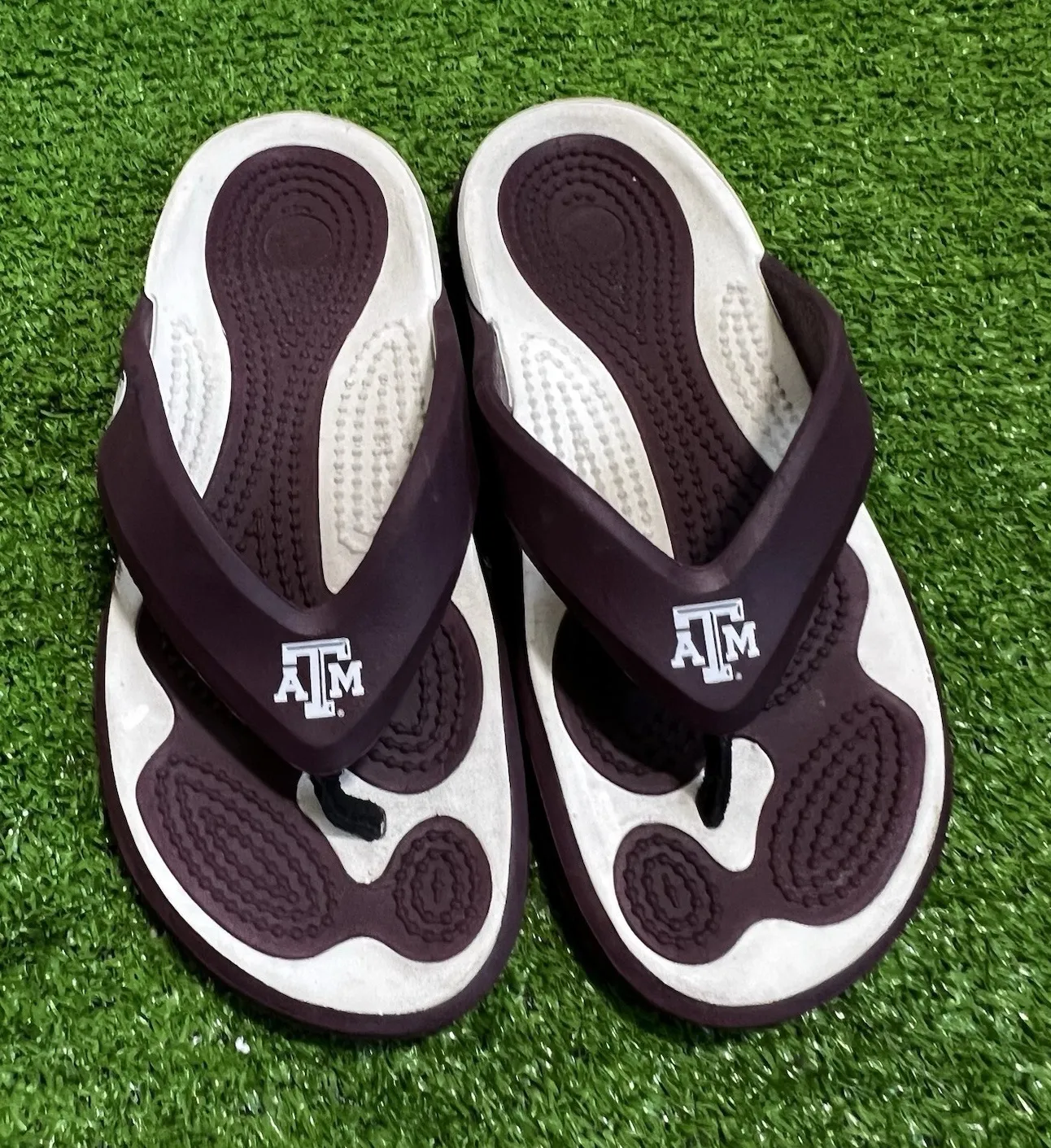 The product is a pair of Texas A&M Flip Flood Crocs sandals in women's size 6. These maroon sandals... Show more