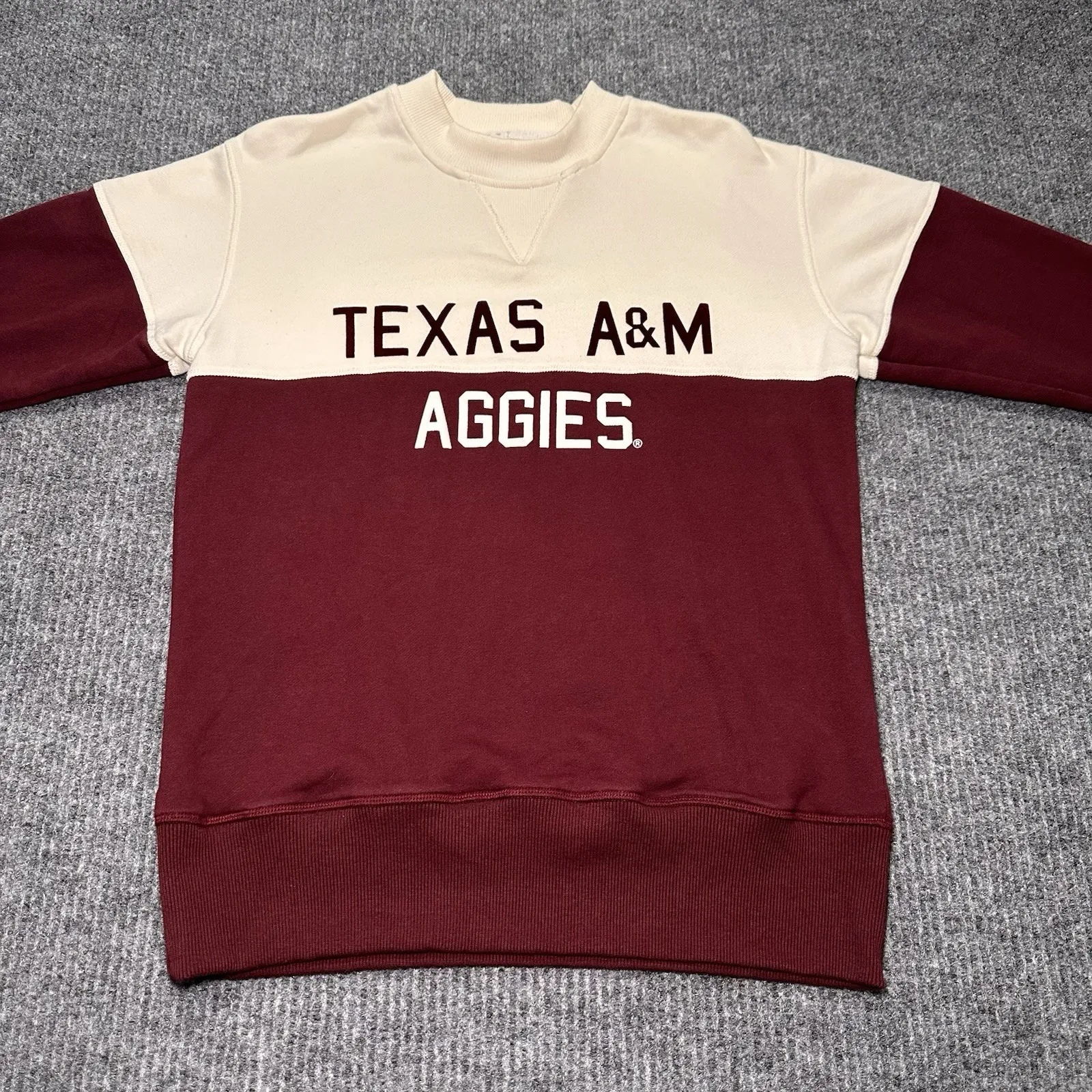 The Texas A&M Hillflint Maroon COLLEGE Gear Sweatshirt is a stylish and comfortable piece of fan apparel for supporters of the college. This pullover sweatshirt features long sleeves and a maroon and white color scheme, perfect for showing off team spirit. With a regular fit and size small, it is suitable for both men and women who want to stay warm and fashionable during the winter, fall, and spring seasons. Whether you're heading to a football game or just want to relax in style, this Hillflint sweatshirt is a must-have addition to your wardrobe. Items used but good condition please see pictures for details.