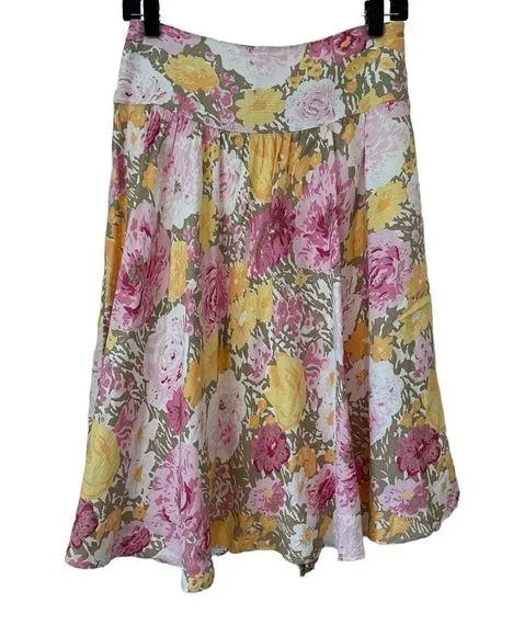 Ann Taylor LOFT Peony Print Linen Blend Midi Skirt. Flared skirt with wide band. Hidden side zippe... Show more