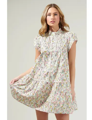 Hausen Floral Pleated Mini Dress Size L Mockneck Ivory White Short Sleeve Size L - $45 - From Alexis