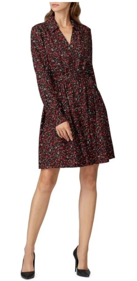 Elegant Thakoon New York dress featuring a delicate red and white floral print against a black background. This piece offers a classic button-front closure, long sleeves, and a softly gathered waist for a feminine silhouette. The lightweight polyester fabric drapes beautifully and is perfect for work, dinner, or a chic daytime look. Brand: Thakoon Size: 10 Pit to Pit: 18.5" Length: 37" Color: Black base with red and white floral print Material: 100% Polyester Care: Dry clean only Made in: China Closure: Button front Condition: Excellent pre-owned condition — no visible flaws. thakoon, designer dress, floral print, mini dress, long sleeve, fit and flare, button front, romantic, feminine, chic, classic, office to evening, NYC style, red black white, fall fashion, spring floral, timeless