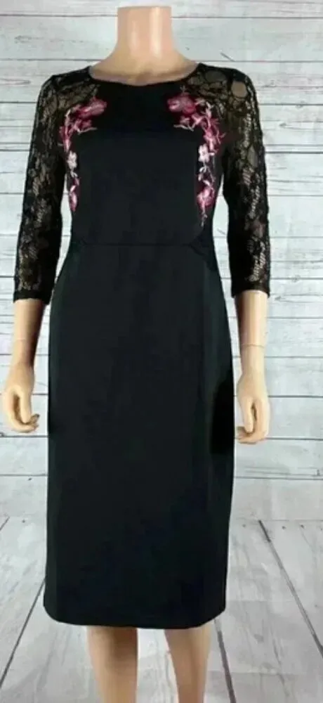 THALIA SODI Embroidered Floral Lace Sleeve Midi Sheath Dress - back zipper, partially lined Polyeste... Show more