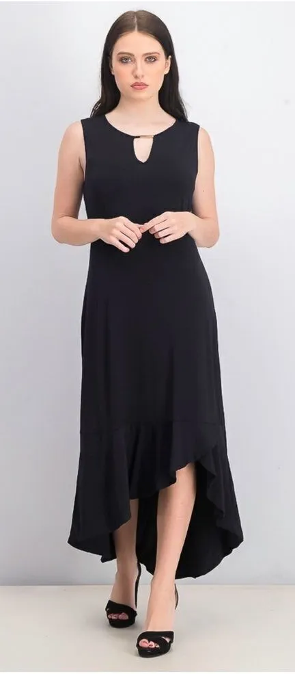 Thalia Sodi Black Flounce Hem Sleeveless Dress Condition: New With Tags- price tag may have sticker residue Size: Small - see measurements in photos Sheath silhouette Round neckline with keyhole detail Sleeveless Hi-low, ruffle hem Thanks for looking! K Tags: minimalist neutral midi stretch high low
