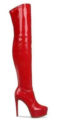 Make a statement with these fierce Thalia Sodi SILENA boots, crafted in bold red faux leather with a dramatic over-the-knee silhouette. Featuring a high stiletto heel and platform base, these boots are perfect for turning heads at parties, nights out, or fashion-forward events. Size: US 9M Color: Red Material: Faux leather upper, leather outsole Heel Height: High (3" and up) Platform Height: 3" Toe Shape: Almond Shaft Style: Over-the-knee Closure: Zip Lining: Faux leather Style: Platform stiletto boots Condition: New with box Occasion: Casual, Party, Night Out SKU: 12152025-09