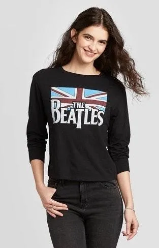 NWOT: new without tags! Black classic crewneck long-sleeved t-shirt top featuring a classic The Beatles Union Jack flag screenprint. Ladies’ size small and runs true. Total length is a little high-cut, coming to up to the waist on average (check out my measurements in the photos!). Officially licensed The Beatles apparel by Hybrid Tees. ❌No trades/holds.