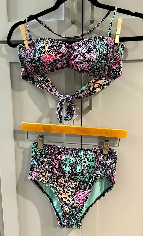 Bikini Lab High Rise Bikini with‎ Bandeau Top w/Smocking Pastel Paisley Print Sm Pink - $9 - From Jennifer