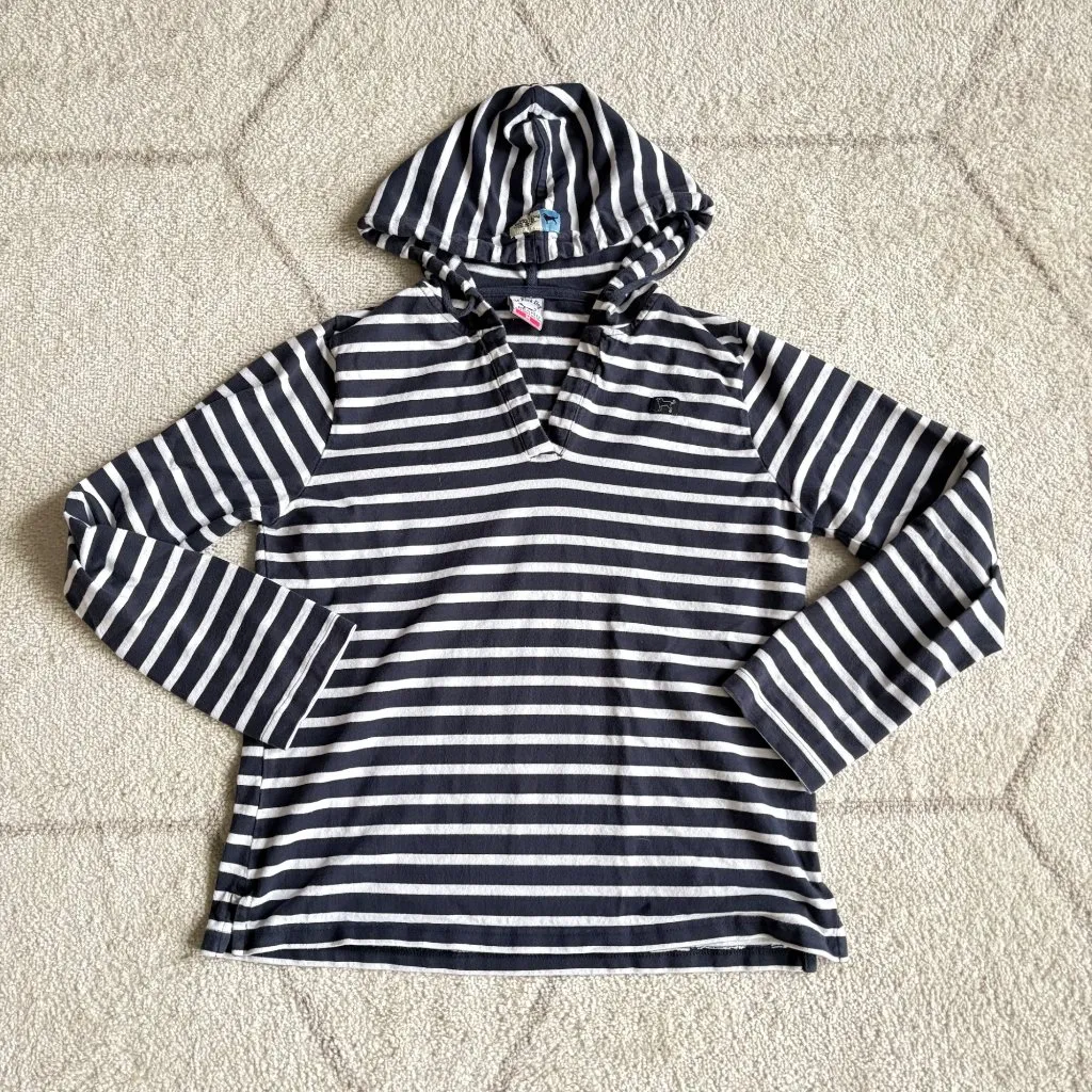 Classic coastal style from The Black Dog — this navy and white striped pullover hoodie delivers that relaxed New England vibe. Crafted from soft cotton, it features a v-neckline, long sleeves, and signature embroidered Black Dog logo on the chest. Perfect for cool summer nights, seaside walks, or laid-back weekends. Tags: black dog hoodie, nantucket style, cape cod sweatshirt, striped pullover, coastal chic, preppy casual, new england fashion, women’s hoodie, long sleeve cotton top, dog logo sweater BRAND: The Black Dog SIZE: M STRETCH: Yes CONDITION: Pre-owned, good COLOR: Navy/White Approx measurements can be found in photos or are posted in listing; measurements are taken flat. Model (if included in non-stock photos) is 5'1" typically a S, XS, 0-2 Reasonable offers welcome - Ships 1-2 Biz days! Msg with any questions! Size: M
