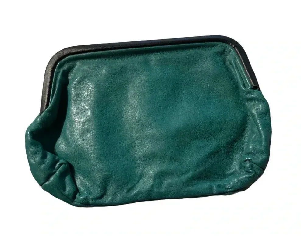 The Broadway Vintage Leather Clutch Purse, Lucite Frame, Made In Italy Green - $30 - From Monique