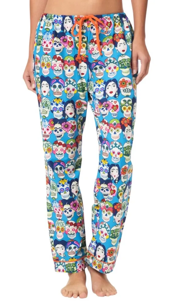 The Cat's Pajamas Women's Frida Cotton Poplin Pajama Pant Blue Size S Excellent pre owned condition Looks new - may not have been worn This women's pajama pant has a roomy, comfortable fit. • Made in USA of imported fabric • 100% cotton poplin • Full length pajama pant • Waist has 1/2 elastic and drawstring • Machine wash cold - tumble dry low - no bleach • Pajama pant is not pre-shrunk and will shrink when washed • Print: Frida • Color: Blue Rise 11.5” Inseam 27.5” SA995 Cotton, comfort, Frida Kohl’s, day of the dead, pajamas, loungewear The Cat's Pajamas Women's Frida Cotton Poplin Pajama Pant Blue