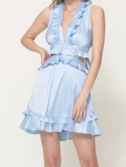 The Clothing Company Satin Ruffle Lace Up Back Mini Dress Blue Size Large NWT - $52 New With Tags - From Kara