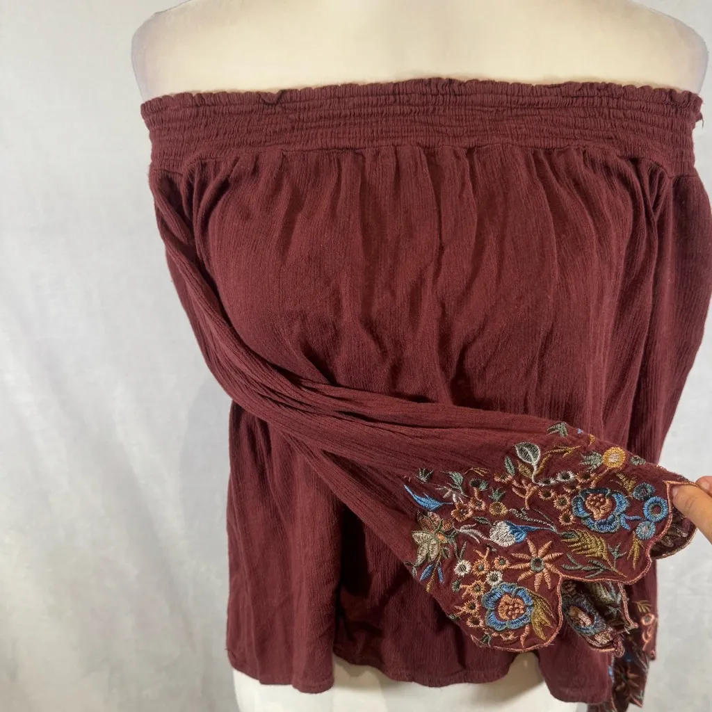 The Cove burgundy scallop embroidered long sleeve off shoulder top size small Red - $16 - From Upstyle