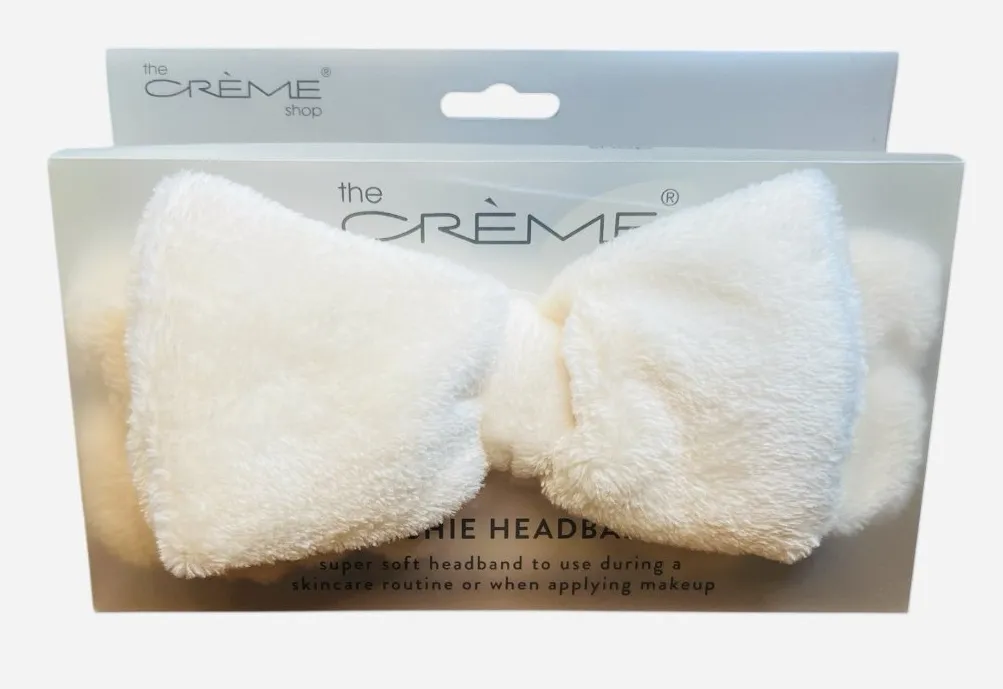 The Crème Shop Plushie Spa Headband White Bow Face Wash Makeup Skincare Features: * Ultra-Soft Material: Crafted from skin-friendly, soft coral fleece material for maximum comfort while you get ready. * Functional Design: Holds your hair back and keeps it securely in place during skincare, face washing, applying makeup, or during a spa day. * Flexible Fit: Features a stretchy, adjustable elastic band that fits all head sizes comfortably without leaving marks. * Responsible Beauty: This product is cruelty-free and vegan. * Easy Care: The headband is washable and absorbent, making it an eco-friendly everyday companion; hand wash gently and air dry only.