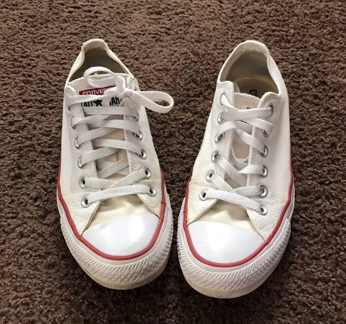 These low top Converse sneakers are in great condition some wear but for the most part they are in great condition They fit true to size Upper white canvas materials w/ white soles and white sneakers Only flaws are some wear