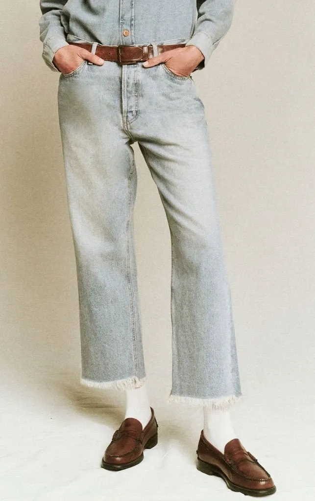 DESCRIPTION The Wayne Jean. is our favorite slouchy denim body. Inspired by—and named for—Emily’s father, who has been a pillar of the brand’s nostalgic roots, this is a beloved fit that gets better with age...just like its namesake. This jean fits easy through the leg, is cropped to the perfect length with a frayed hem, and is washed and worn to get the hand feel we love. Wear The Wayne Jean. true to size at the natural waist or size up to wear them oversized and slung low, like borrowing his favorite pair. Reasonable offers welcomed ✨ CONDITION Gently used, in good condition. No stains/tears. MATERIAL 100% Cotton MEASUREMENTS Waist - 16" Inseam - 24" Rise - 11" (Please note: all measurements are approximate. Taken flat across the article of clothing)