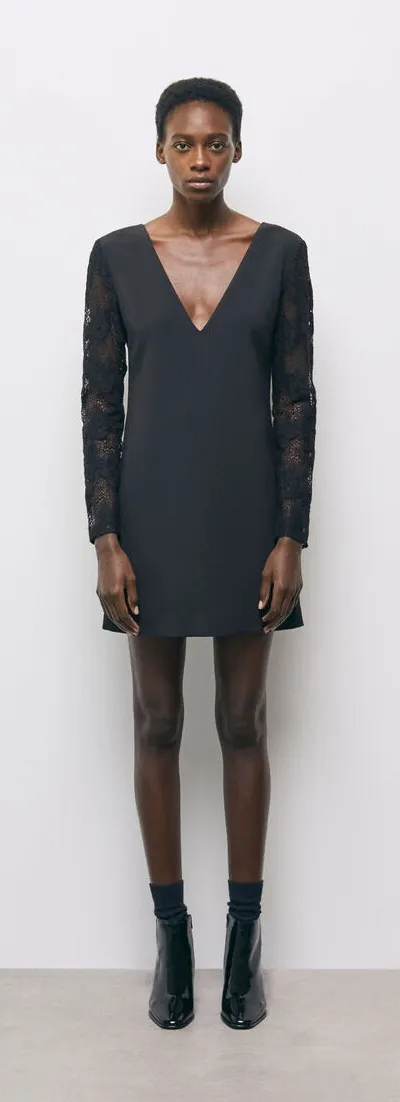 New with tags The Kooples Sheath Black Dress. Size small Short light dress Light crepe material and lace Plain black Straight cut Low V-neck Long sleeves FABRIC, CARE AND ORIGIN Exterior : 94% Polyester, 6% Elastane Lace : 90% Polyamide, 10% Elastane Hand Wash 40°C Do Not Bleach Iron At Max 110°C Do Not Dry Clean Tags - summer, vacation, wedding, bride, bachelorette, spring, graduation, Mother of the Bride, Mother of the Groom, Cocktails party, rehearsal dinner, lace