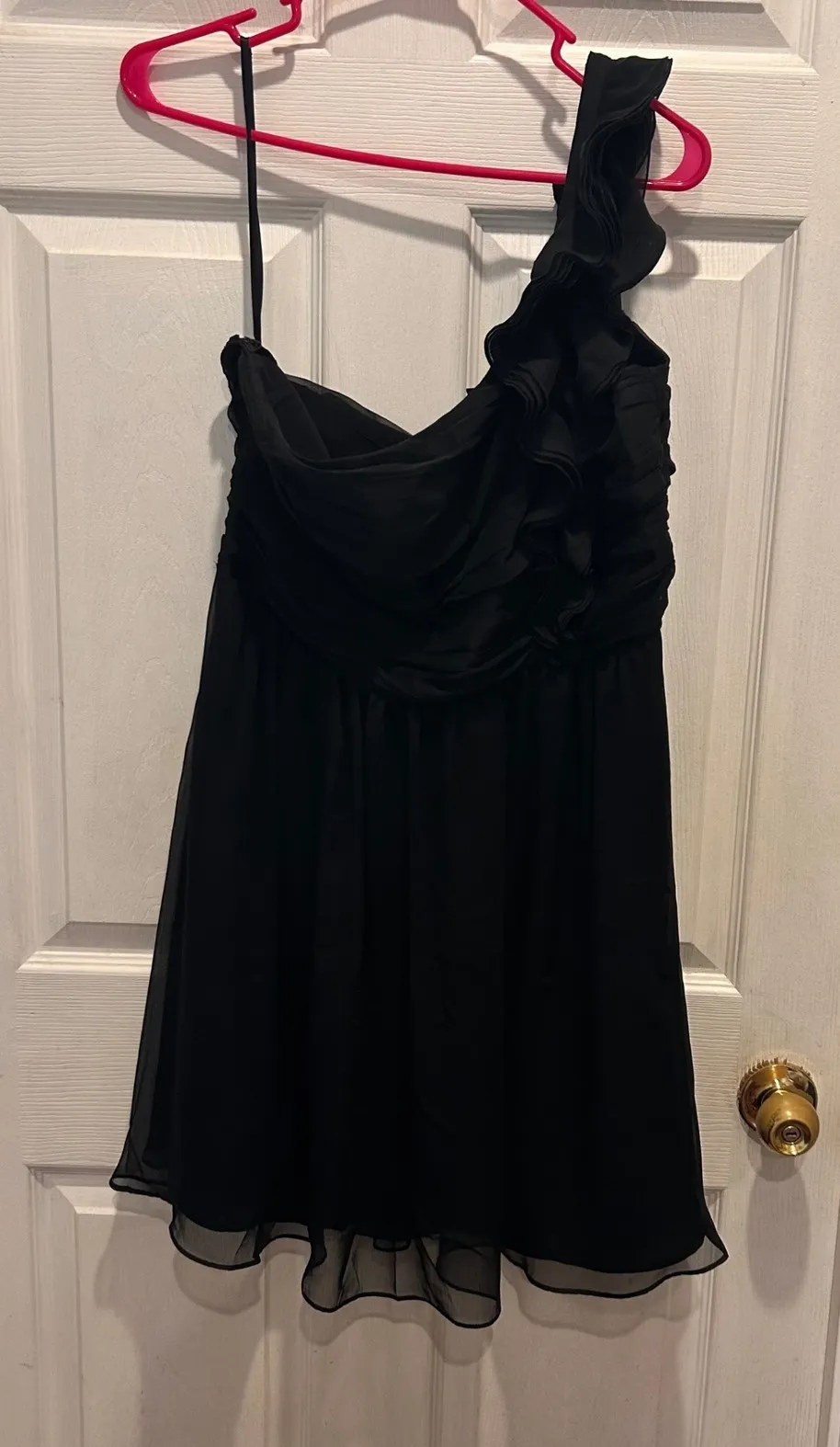 Keywords: The Limited Dress, Black Dress, One Shoulder Dress, Ruffle Dress, Cocktail Dress, Party Dress, Womens Dress, Size 14, Formal Dress, Evening Dress, Little Black Dress, LBD, Special Occasion Dress, Chiffon Dress, Polyester Dress