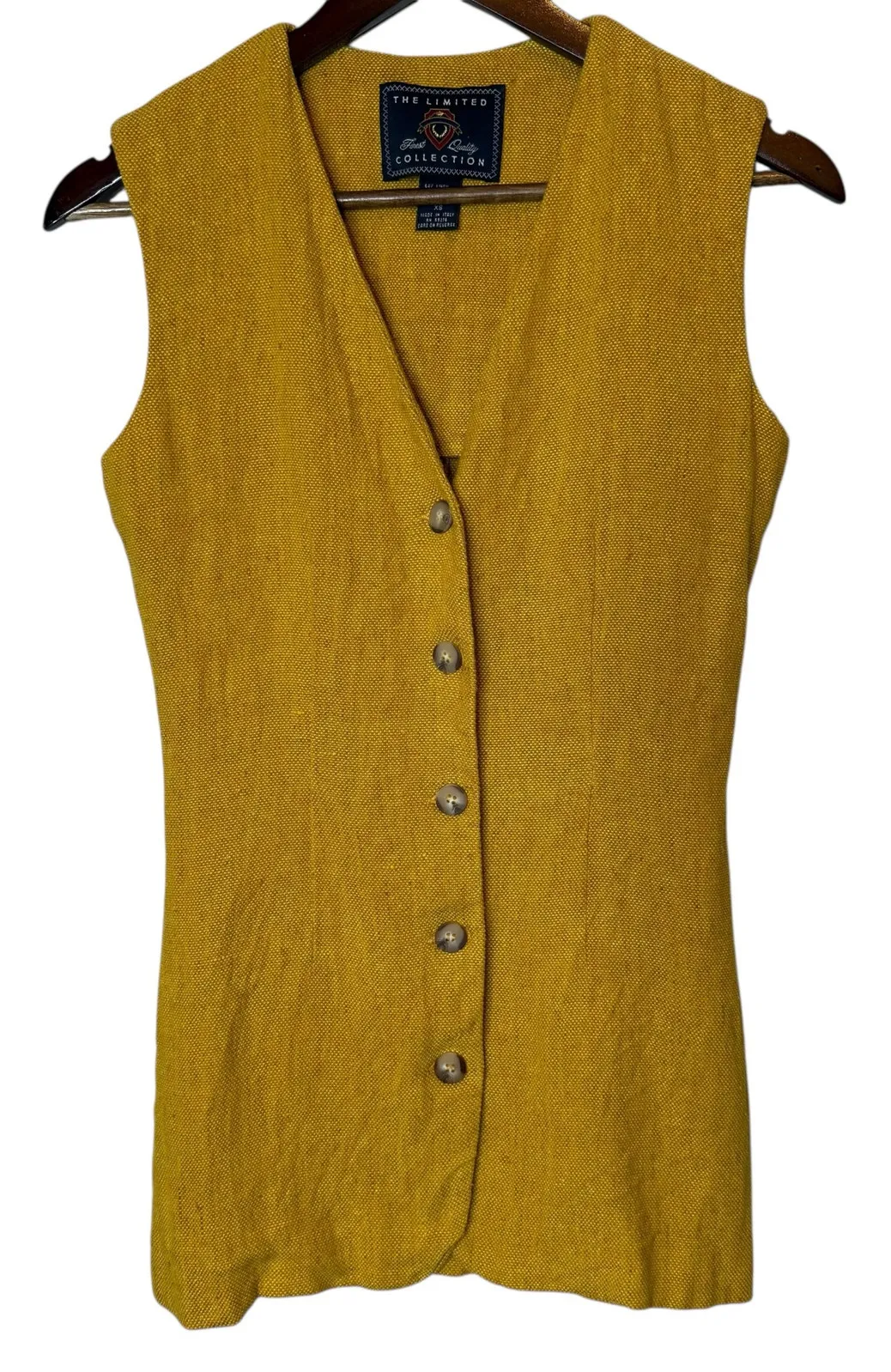 The Limited Collection Vintage Linen Tweed Long Vest in Mustard size XS In excellent condition, no... Show more