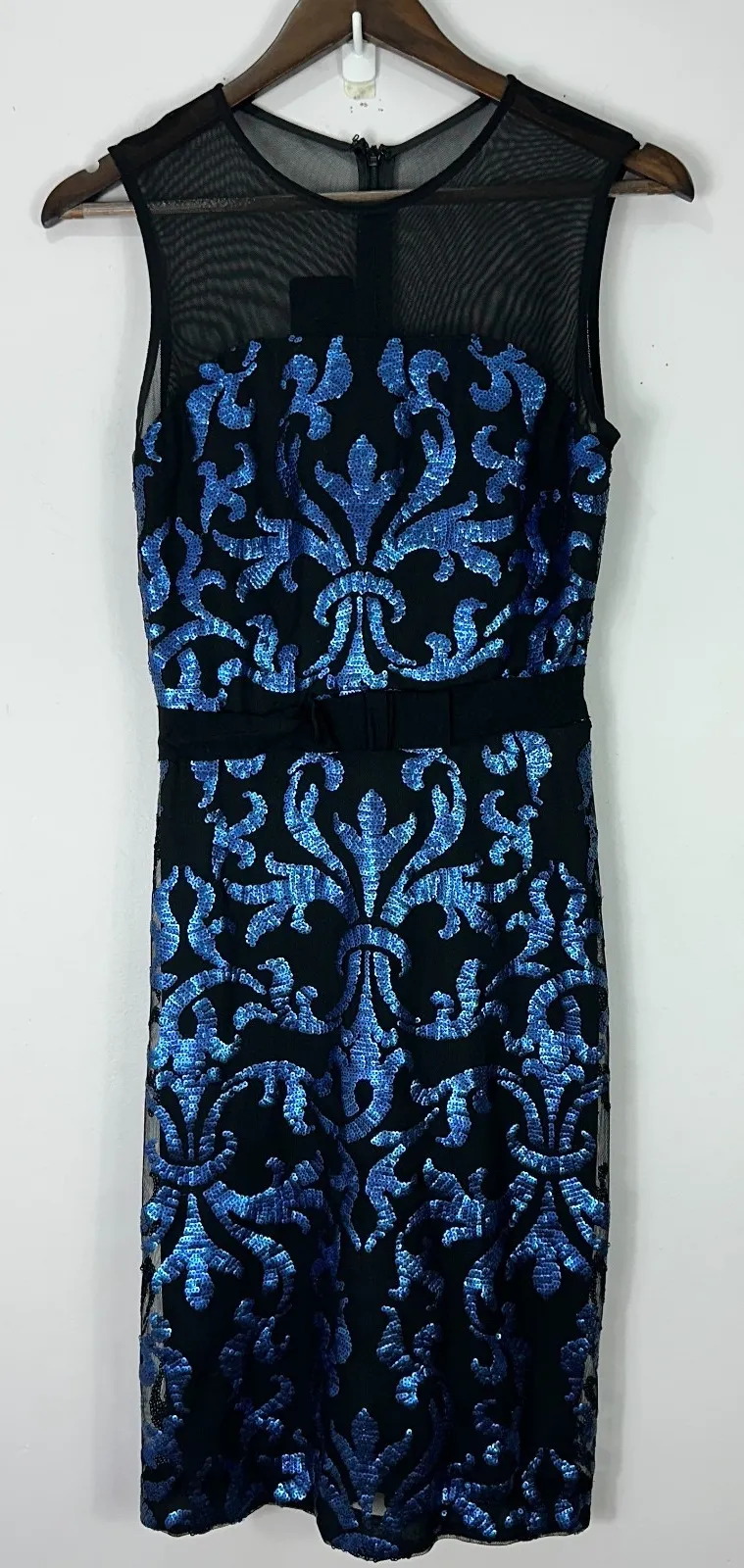 The Limited Sheath Dress 6 Black Blue Sequin Mesh Overlay Cocktail Party Glam
