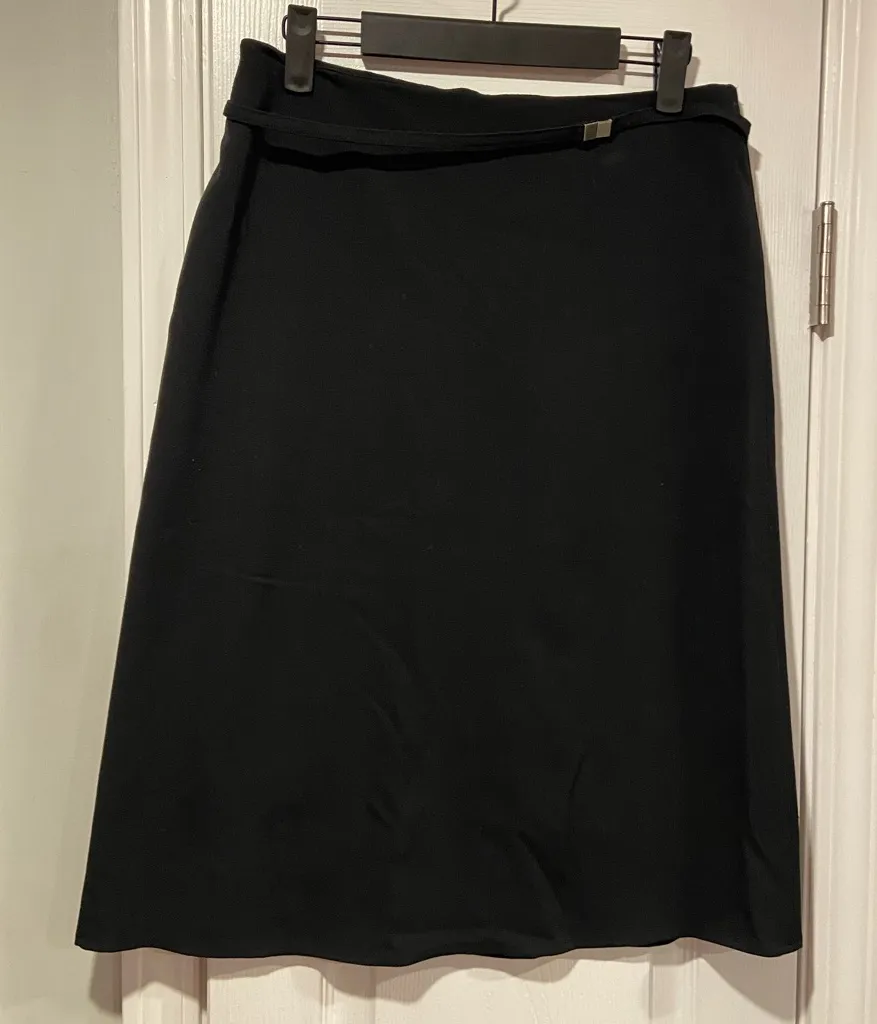 The limited Womens size 6 Excellent condition Zip back a line black midi skirt Front belt with silv... Show more