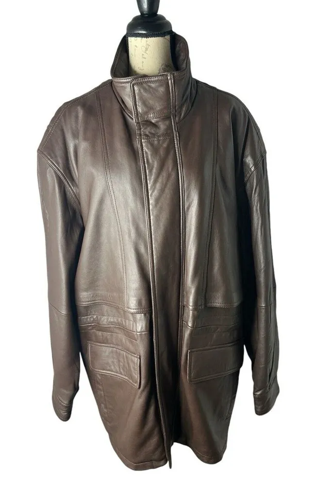 Vintage Leather Limited Thermolite Black Tie Trench Coat Women's Size M This leather coat is in gre... Show more