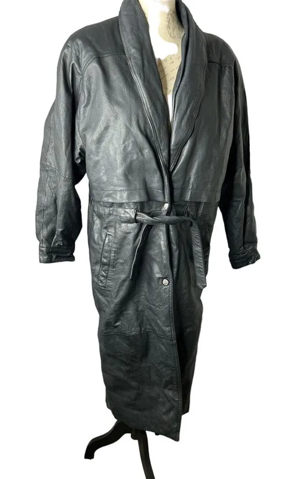 Vintage Leather Limited Thermolite Black Tie Trench Coat Women's Size M This leather coat is in gre... Show more