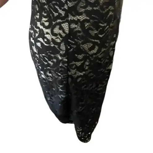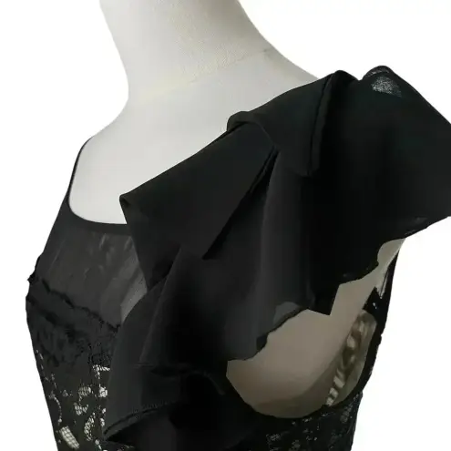 Darkly elegant black lace cocktail dress with soft gothic charm. Features a sheer neckline, lace ove... Show more
