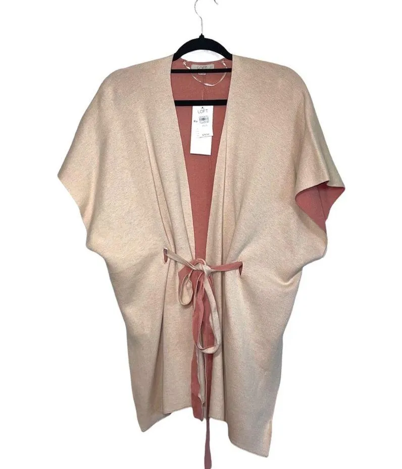 Brand new LOFT tan & salmon pink reversible belted poncho. New with tags & in perfect condition! Wid... Show more