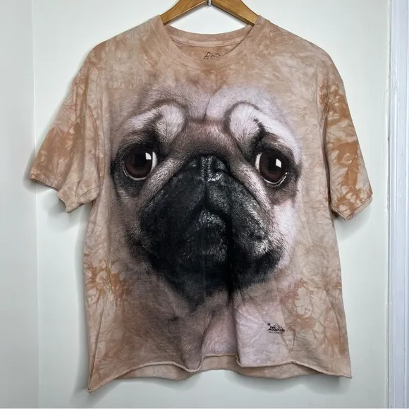 The Mountain Pug Dog T Shirt Cut Hem Brown Tan Tie Dye Size Large Cotton - $20 - From Melanie