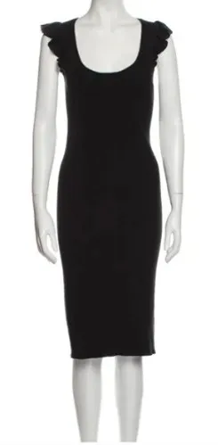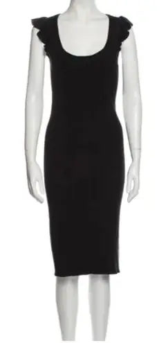 The nines by Hatch black ribbed maxi dress with flutter sleeves. A scoop neckline and sleeveless des... Show more