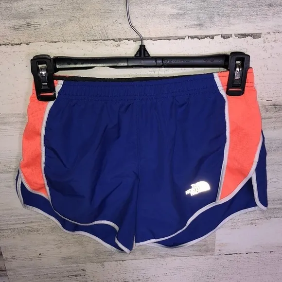 The North Face athletic shorts running shorts orange and blue in color size XS Has been worn but sti... Show more