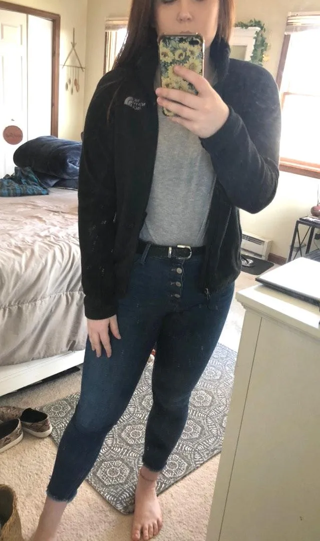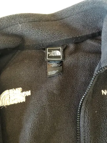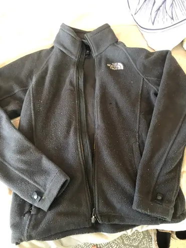 Light weight Black zip up In decent condition but small hole in front Size small Fleece