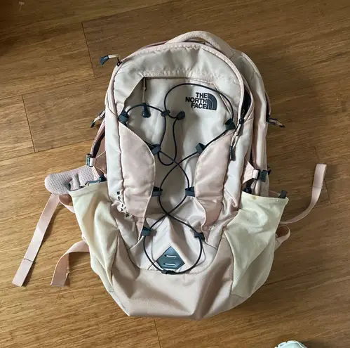 Pink and black northface borealis backpack. Has laptop compartment. A few stains but overall super g... Show more