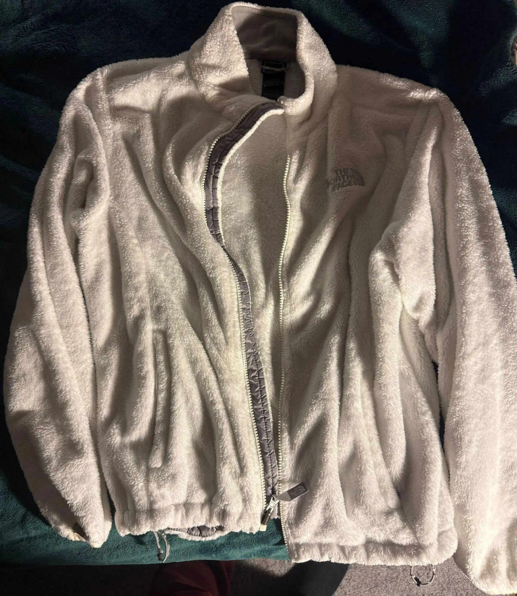 White north face, size L but fits more medium. So cozy and still great condition!