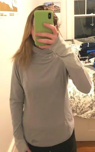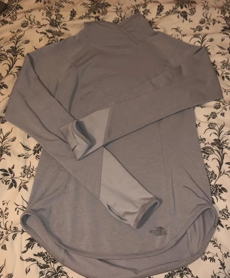 light weight but keeps you really warm. has thumb hole.