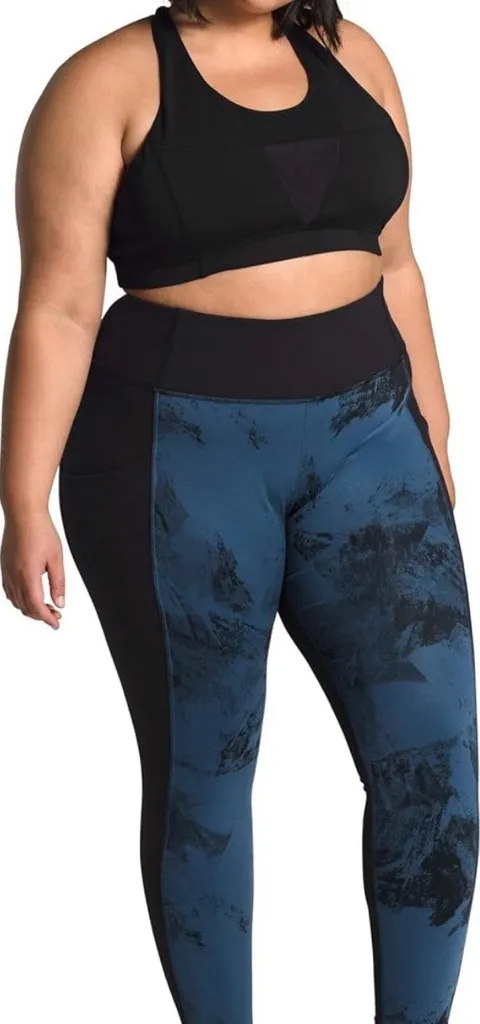 Size 1X - pocket inside and outside side pockets These leggings feature a dynamic black and blue pat... Show more