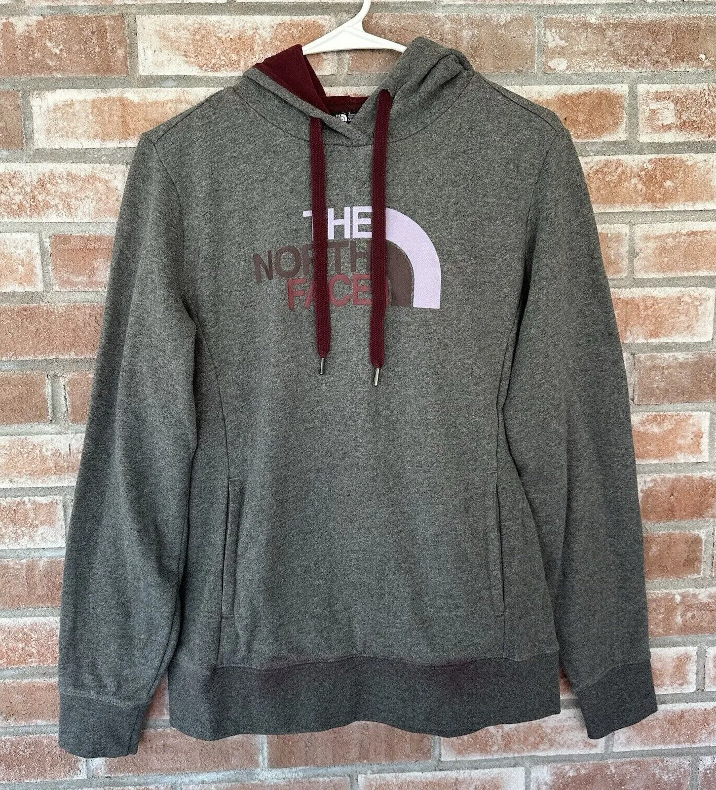 Women's size medium The North Face logo hoodie. Gray with maroon accents. Gently used condition with... Show more
