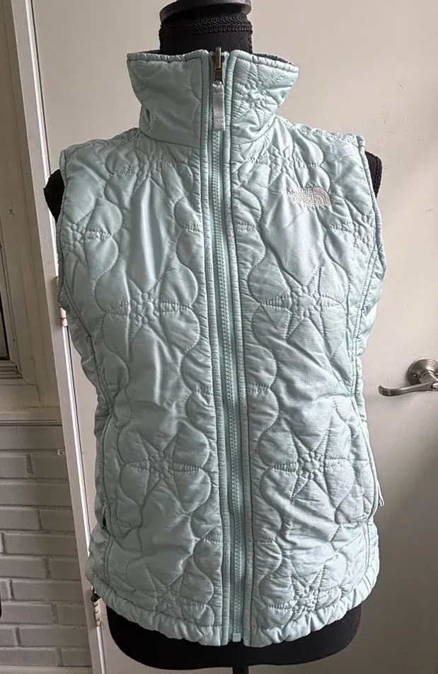 The North Face Quilted Puffer Vest in mint blue green. Size small. Excellent used condition