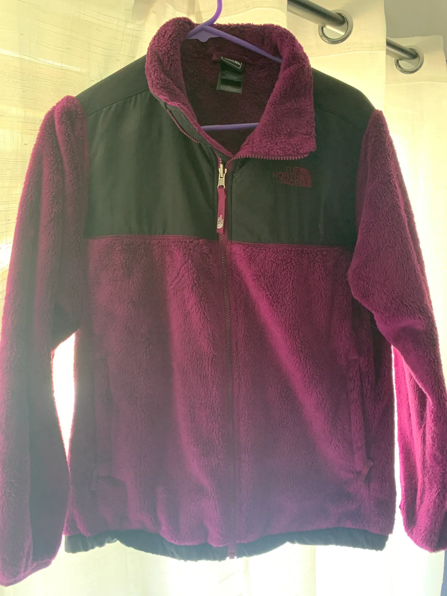 Purple North Face fuzzy Sherpa jacket, size XL in girls which fits like a S/M in women’s. Worn maybe... Show more