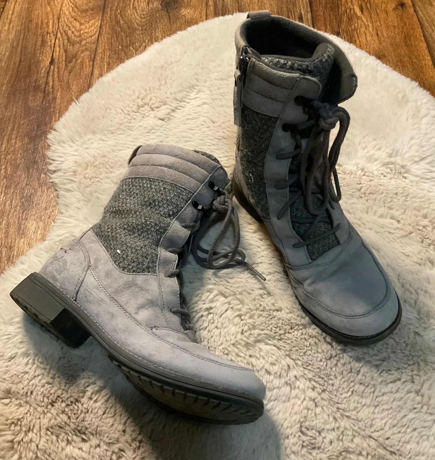 The North Face Size 8 Bridgeton Lace Up Gray Leather Insulated Side Zip Rubber Sole, some dirt spots... Show more