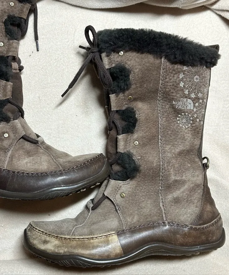 The North Face Women Size 8 Primaloft 200 Gram Insulation Brown Suede Fur Boots are stylish and func... Show more