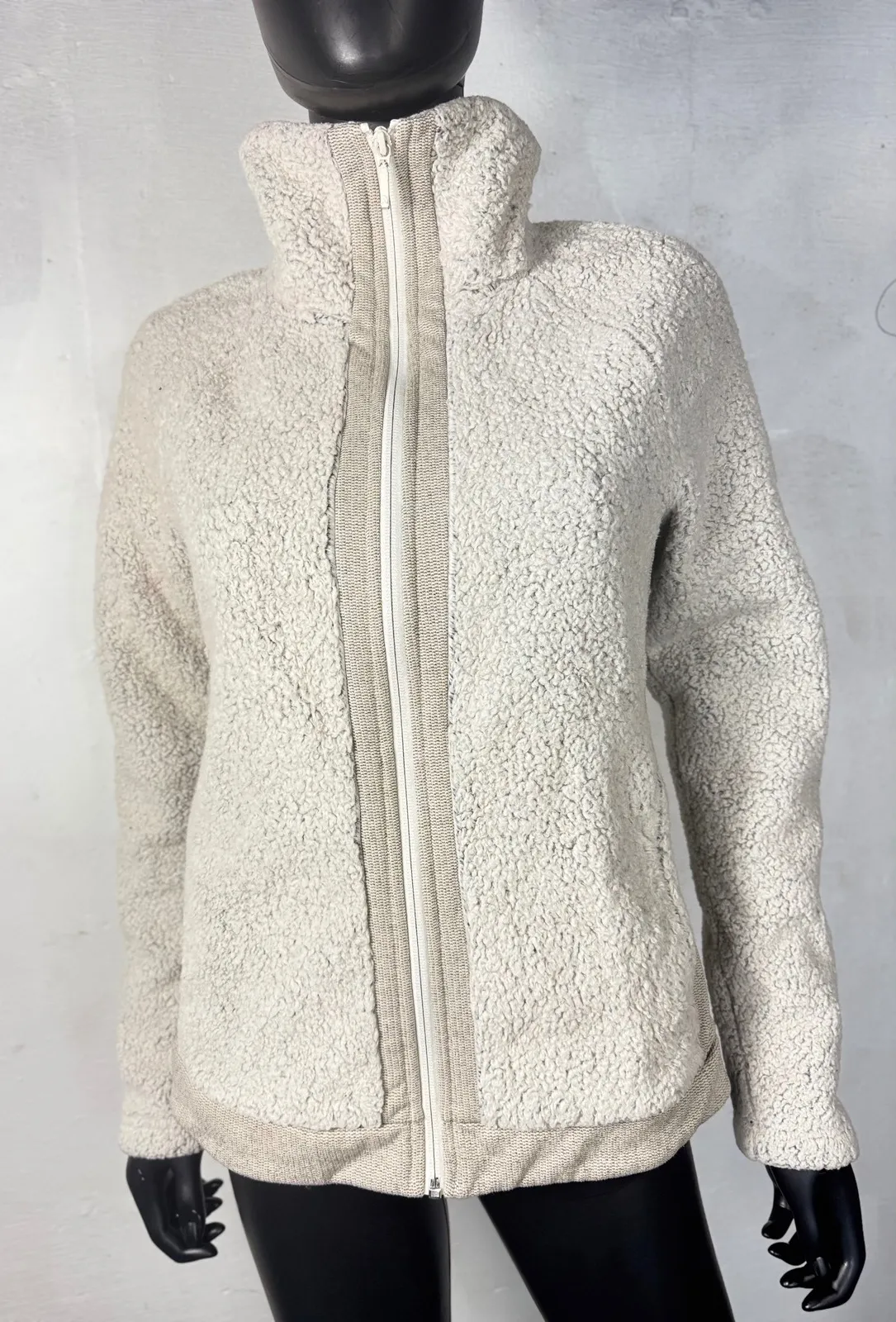 Keywords: The North Face, fleece jacket, sherpa jacket, womens jacket, full zip, high neck, small, beige, cozy, warm, outdoor, winter, casual, athletic, sportswear