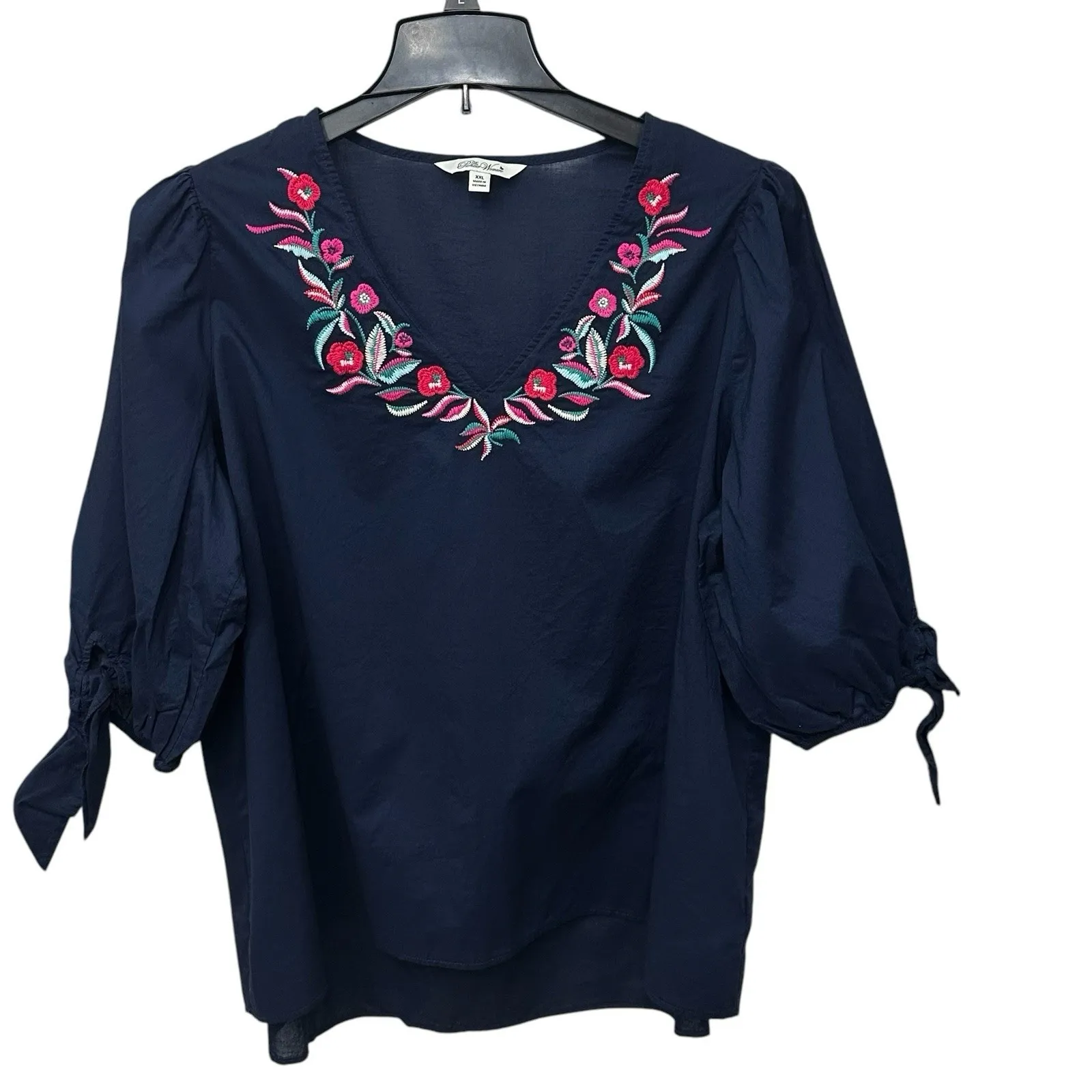 The Pioneer Woman V-Neck Tie Cuff High Low Blouse Women's Size XXL Blue Top is in good preowned condition. No holes or stains. Please see photos. Message me with questions Measurements Chest armpit to armpit 26" Length (top of shoulder to hem) 27.5" front 29" back