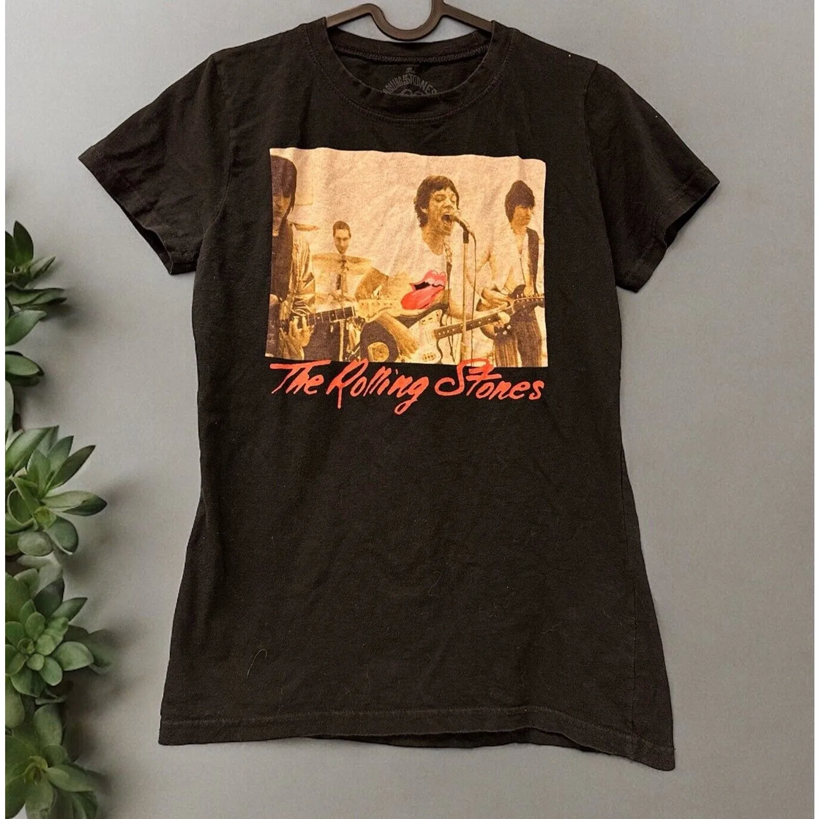 Show off your love for the Rolling Stones with this limited edition graphic tee! Made from 100% cotton, this black t-shirt features the iconic Rolling Stones logo in a solid pattern. The crew neckline and casual sleeves make it a comfortable choice for any occasion, while the vintage look adds a touch of 60s and 70s flair. This petite medium shirt is a regular fit and perfect for any Rolling Stones fan. It's a must-have for anyone looking for a unique addition to their wardrobe. Don't miss out on this opportunity to own a piece of music history!