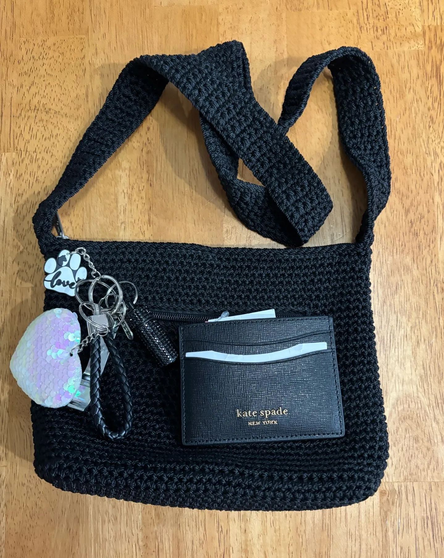 The Sak Black Crochet Shoulder Bag with Kate Spade Cardholder and purse charms - $90 - From Chandra