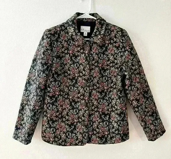The Tog Shop Blazer Size 12 Petites Jacket Floral‎ Carpet Jacquard Metal Buttons Green - $28 - From Sheila