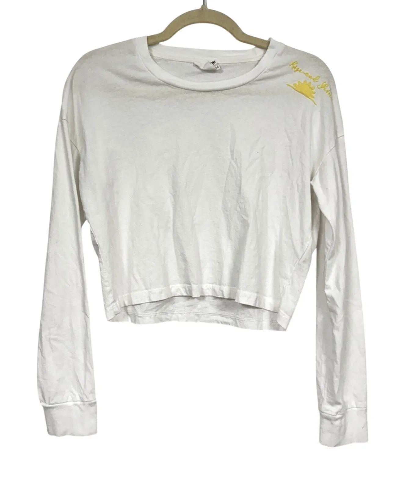 The Upside White Long Sleeve Cropped Tee Shirt Womens 8 Rise Shine Embroidered - $30 - From Lisa
