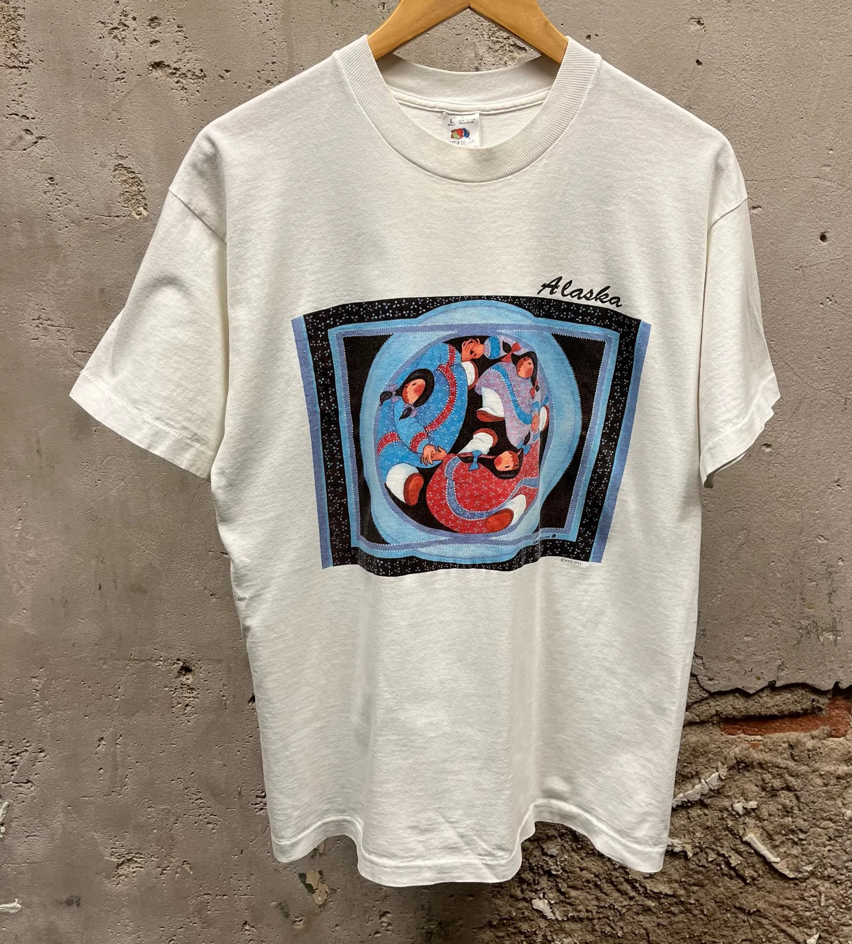 In good condition! Adorable graohic on the front of a painting, dated 1993. Single stitch top and bo... Show more