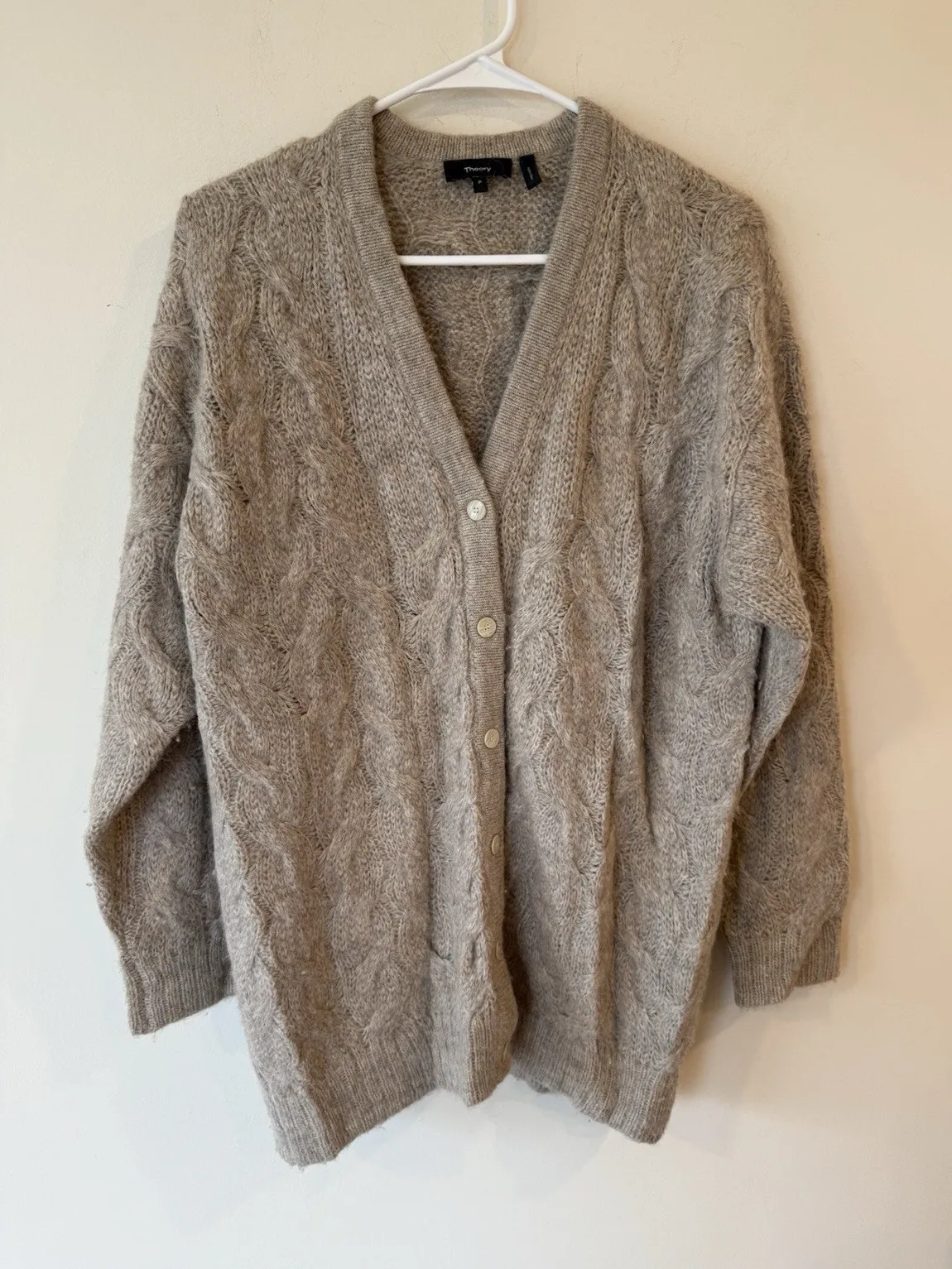 Theory Alpaca Soft Cable Knit Cardigan Sweater in Beige, Size XSmall is a stylish and cozy addition... Show more
